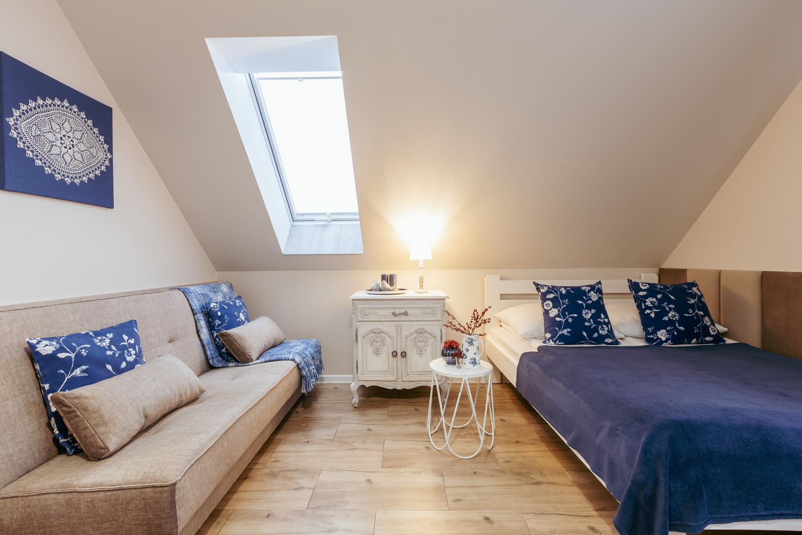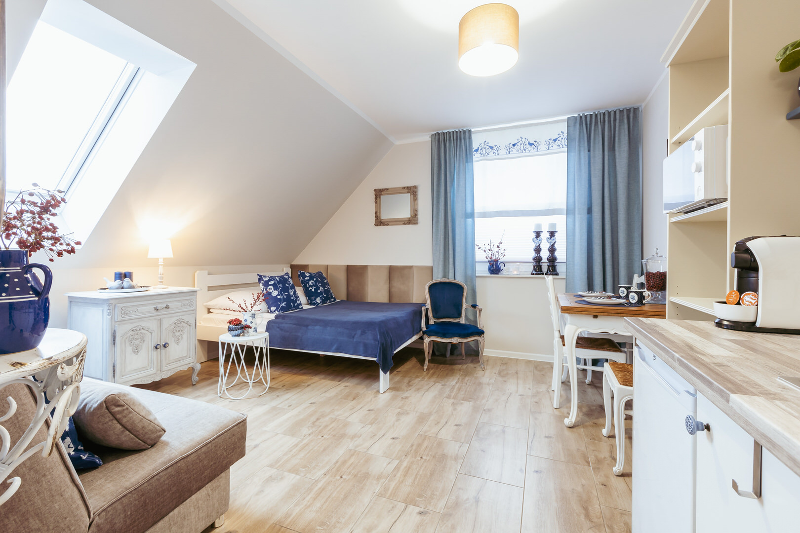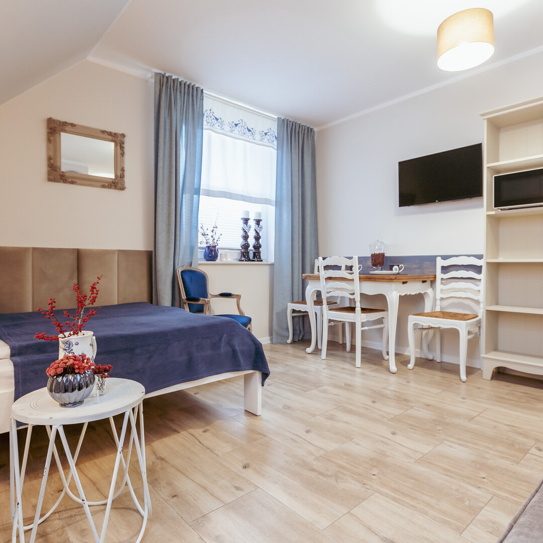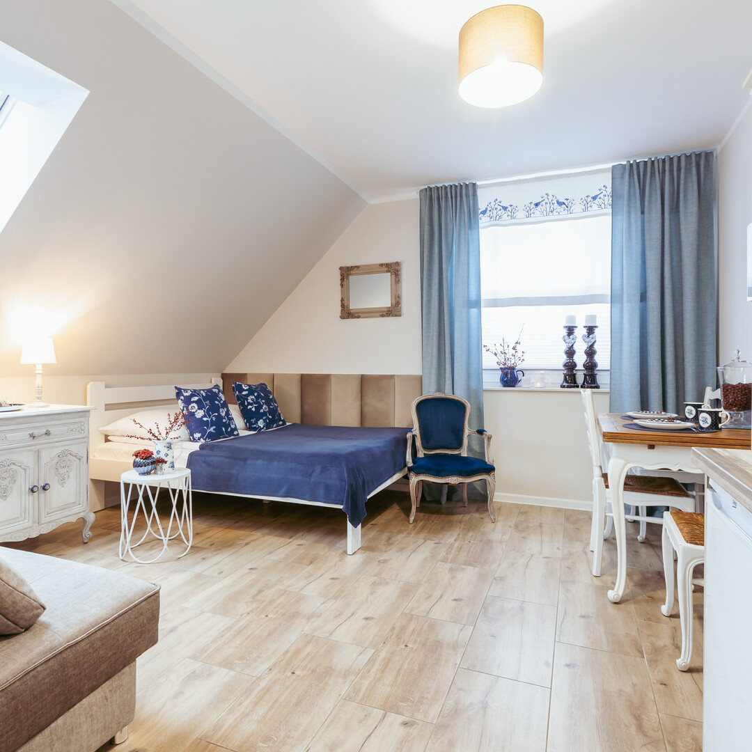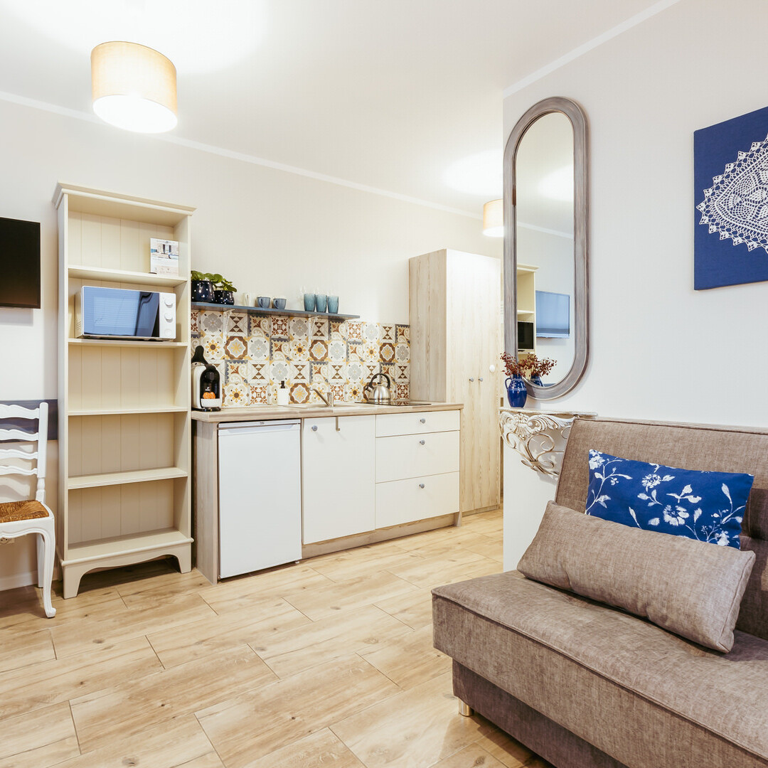 Apartament 3 osobowy. Przepiękny i komfortowy apartament z trzema miejscami noclegowymi. W apartamencie łóżko małżeńskie 140/200 oraz kanapa rozkładana 120/200 Apartament usytuowany na piętrze.